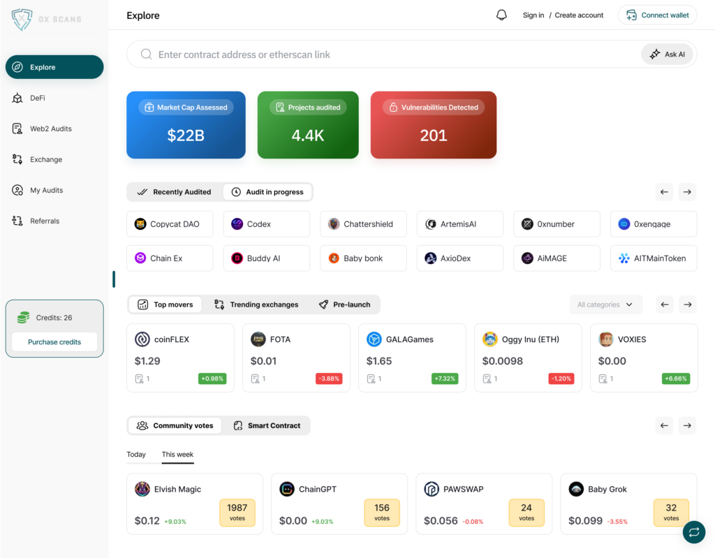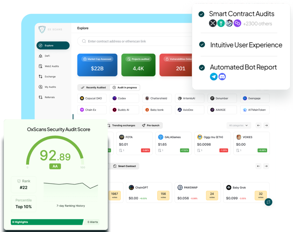Manual auditing processes often struggle to identify intricate vulnerabilities within smart contracts, necessitating an innovative solution – 0xscans – The AI Auditing Innovation.
